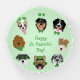 Illustration of many different breeds of dogs. They are dressed in St. Patrick's Day attire.