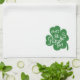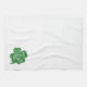 Kitchen towel is shown in white with a festive St Patrick's Day clover print.