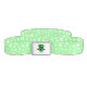 The main belt is light green with white shamrocks. The buckle has a cartoon green mushroom with shamrock spots.