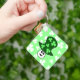 The key chain is made of metal and really sturdy. The flower design is really cheerful. The logo and colors are clear and crisp!