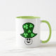 A cartoon mushroom with a green top shaped like a leprechaun hat. The cap has shamrock spots. The white stalk has a smiley face.