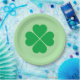 Paper plate is shown in a green St. Patrick's clover print on the round style plate.