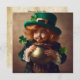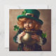 St. Patrick's Day party square invitation with an adorable child dressed up as a leprechaun holding a pot of gold. A retro or vintage look with a parchment-style design on the back of the card. Cheers to the brew and celebration. Personalize it with your information on the back of the invite. See all my shops at https://bit.ly/SandyspiderStores