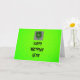 A St Patric's Day Birthday Card with a green back ground with a four leaf clove on the front that's bright and colorful that's on a card.