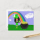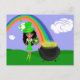 St Pat's Day Brunette Girl Leprechaun with Rainbow Postcard