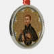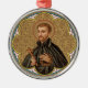 St. Peter Claver (1580-1654) was a Spanish Jesuit priest and missionary. In 1610, St. Peter volunteered to serve in the New Kingdom of Granada in the Americas, which encompassed present-day Panama, Colombia, and Venezuela. There he worked for forty years ministering to slaves upon their arrival at Cartagena, a major hub in the Transatlantic slave trade, and on the plantations in the neighboring countryside. His tireless efforts not only to convert the slaves to Catholicism by preaching Christ crucified but to ameliorate their sufferings earned him the epithet “Slave of the Africans”. + Here St. Peter is shown clad in Jesuit garb—a black cassock and collared cape. He holds a simple brown wooden cross and a crown of thorns, symbols of Jesus as “a man of sorrows and acquainted with grief” (Isaiah 53:3). The image is enclosed in an inner frame reminiscent of a Gothic eight-petalled rose (or wheel) window; the corners of the simple, square outer frame are filled with heraldic thistles. + St. Peter Claver died on 8 September 1654 of natural causes after a long illness. He is patron saint of Inter-racial justice, African Americans, African missions, slaves, and the Republic of Colombia. + Feast: September 9 + Image Credit (BK 058): Antique image of S[aint] Petrus [Peter] Claver, S.J., originally published in chromolithography by B. Kühlen, Mönchengladbach, Germany, unnumbered Jesuit Series, late 19th century, from the designer’s private collection of religious ephemera.