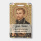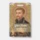 St. Peter Claver (1580-1654) was a Spanish Jesuit priest and missionary. In 1610, St. Peter volunteered to serve in the New Kingdom of Granada in the Americas, which encompassed present-day Panama, Colombia, and Venezuela. There he worked for forty years ministering to slaves upon their arrival at Cartagena, a major hub in the Transatlantic slave trade, and on the plantations in the neighboring countryside. His tireless efforts not only to convert the slaves to Catholicism by preaching Christ crucified but to ameliorate their sufferings earned him the epithet “Slave of the Africans”. + Here St. Peter is shown clad in Jesuit garb—a black cassock and collared cape. He holds a simple brown wooden cross and a crown of thorns, symbols of Jesus as “a man of sorrows and acquainted with grief” (Isaiah 53:3). The image is enclosed in an inner frame reminiscent of a Gothic eight-petalled rose (or wheel) window; the corners of the simple, square outer frame are filled with heraldic thistles. + St. Peter Claver died on 8 September 1654 of natural causes after a long illness. He is patron saint of Inter-racial justice, African Americans, African missions, slaves, and the Republic of Colombia. + Feast: September 9 + Image Credit (BK 058): Antique image of S[aint] Petrus [Peter] Claver, S.J., originally published in chromolithography by B. Kühlen, Mönchengladbach, Germany, unnumbered Jesuit Series, late 19th century, from the designer’s private collection of religious ephemera. + Feel free to change texts, fonts, and colors!