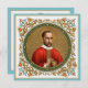 For a man credited with many firsts and one of its three co-founders, St. Peter Faber (1506-1546) is not terribly well known outside Jesuit circles. At first, he was sole college roommate of St. Francis Xavier at the University of Paris. The men were later joined by St. Ignatius Loyola, a former soldier who was fifteen years their senior. St. Peter was St. Ignatius’s first recruit to his nascent Society of Jesus (Jesuits) embracing the Spiritual Exercises; St. Francis, who was intent on an academic career, proved a tougher sell. St. Peter was the first Jesuit priest, being ordained on 30 May 1534. As such, he celebrated the Mass at Monmartre in the underground Chapel of the Martyrs on 15 August later that year during which the first Jesuits took their religious vows. (It is his role as priest that is emphasized in the image here: St. Peter is dressed for Mass in a red chasuble and is about to distribute Holy Communion. The Saint’s facial features conform to contemporary portraits and his pose to several engravings and paintings that memorialize the event.) After Loyola himself, Faber was the most esteemed of the early Jesuits especially in spiritual matters. After the congregation was placed at the disposal of the Pope and its Rule confirmed six years later in 1540, St. Peter tirelessly crisscrossed Europe on foot preaching and teaching in Italy, Germany, Portugal, and Spain—a kind of ‘home’ missionary. His writings exhibit a deep devotion to the angels and the saints. Brought down by a fever and worn out from his labors, St. Peter died in Rome on 1 August 1546, reportedly in the arms of St. Ignatius himself. On 17 December 2013, Pope Francis declared Peter Faber a saint by a process known as ‘equipollent canonization’, a process that dispenses with standard procedures and ceremonies in the case of someone long venerated. St. Peter Faber was the Pope’s favorite Jesuit. + Feast: August 1 (August 2 among the Jesuits) + Image Credit (BK 051): Antique image of B[lessed now Saint] Petrus [Peter] Faber, S.J., originally published in chromolithography by B. Kühlen, Mönchengladbach, Germany, unnumbered Jesuit Series, late 19th century, from the designer’s private collection of religious ephemera. The Saint’s red chasuble is an example of artistic license: the liturgical color of vestment for the Feast of the Assumption is and was white.+ Feel free to change the color of the edging. See the Color Palette postcard for recommended hues. Color Palette postcards are found in an image's associated COLLECTION and in the Special COLLECTION devoted just to color palettes.