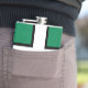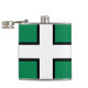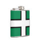Vinyl wrapped flask with design with a flag of historic county of Devon, in England, Great Britain; green flag with a white cross with a black border