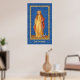 On May 24–25, 1802, in the Catacomb of St. Priscilla on the Via Salaria of Rome, human remains were discovered in a tomb sealed with three tiles. The tiles were decorated with palms, arrows, anchors, and an ivy leaf and bore the inscription when properly rearranged: ‘Pax Tecum Filumena’, that is, ‘Peace be with you, Philomena’. + According to apparitions of the saint herself, St. Philomena (c. 291-c. 304) was a young Greek consecrated virgin who suffered martyrdom during the reign of Diocletian. Having rejected the Roman Emperor for love of Christ, she was subjected to a series of tortures (such as flogging) and attempts on her life (being shot with arrows and drowned with an anchor tied to her neck). When these attempts failed to kill her, she was finally beheaded. + In this lovely image, St. Philomena, garbed in a yellow robe with an orange-red mantle, is depicted crowned with pink and white roses, holding an arrow and a stalk of lilies of purity, and wearing a noose of rope around her neck that is attached to a large anchor. A rich royal blue background is decorated with line drawings in gold of intertwined flowers and foliage. + Canonized by Pope Gregory XVI but never enrolled in the Roman Martyrology, St. Philomena’s Church-approved cultus was suppressed in 1961 despite her having been venerated for more than 150 years and by a number of people who themselves became saints no less—St. John Vianney and St. Damien of Molokai to cite but two. (Why? It’s a long story—too long to go into here.) Nevertheless, the beloved little saint still enjoys widespread, private veneration by the laity. + St. Philomena is patron saint of babies, children, and young people. Known as a ‘Wonder Worker (Thaumaturga)’, she is invoked in desperate cases and lost causes. “To Philomena, nothing is refused.” + Feast: August 11 + Image Credit (SNV 051): Antique image of St. Philomena from a late 19th-early 20th century devotional print, [probably] originally published by St. Norbertus Verlag, Vienna, Austria, from the designer’s private collection of religious ephemera.