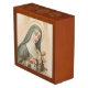 Wife, Mother, Widow, Nun—St. Rita of Cascia (1386-1457) experienced many stages of life. Life, however, had a way of putting her between a rock and a hard place. For this reason, she is venerated as patron saint of lost and impossible causes. Devoted to Christ’s Passion, she received a partial stigmata at the age of sixty: a chronic wound in the forehead as if from a crown of thorns that bled for the next fifteen years. It is her principal attribute. + Feast: May 22 + Image Source (M 015): Antique image of St. Rita [of Cascia] from a 1904 devotional print in chromolithography originally published by A. & M. B. [Albrecht & Meister of Berlin], Germany. From the designer’s collection of religious ephemera.