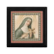 Wife, Mother, Widow, Nun—St. Rita of Cascia (1386-1457) experienced many stages of life. Life, however, had a way of putting her between a rock and a hard place. For this reason, she is venerated as patron saint of lost and impossible causes. Devoted to Christ’s Passion, she received a partial stigmata at the age of sixty: a chronic wound in the forehead as if from a crown of thorns that bled for the next fifteen years. It is her principal attribute. + Feast: May 22 + Image Source (M 015): Antique image of St. Rita [of Cascia] from a 1904 devotional print in chromolithography originally published by A. & M. B. [Albrecht & Meister of Berlin], Germany. From the designer’s collection of religious ephemera. +