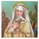 In this lovely depiction from a devotional print, St. Rose of Lima (1586-1617) stands in a tropical Peruvian landscape at nightfall. Little yellow stars twinkle in the darkening blue-green sky behind her. She is flanked on the left by a brown clapboard church and on the right by a swaying palm tree. Clad in the cream-colored Dominican habit befitting her membership in the Third Order, she wears a crown of thorns in memory of Christ’s passion atop her white veil. She holds an armful of pink roses and a wooden cross. + St. Rose was the first person born in the Americas to be declared a saint and remains a popular one. She is the primary patron of Peru and of the indigenous peoples of Latin America, co-patron of the Philippines with St. Pudentiana, patron the Americas in general, and patron of Santa Rosa, California, and its Diocese. Additionally, she is the patron saint of embroiderers, gardeners, and florists. Quite naturally, roses of all varieties have become her attribute. In art, she is depicted crowned with roses, holding roses (as here), or in a setting with potted roses or flowering rose bushes. + Feast: August 23 + Image Credit (M 024): Antique image of St. Rose of Lima from a devotional chromolithograph printed in Germany, original publisher unknown, late 19th-early 20th century, from the designer’s private collection of religious ephemera.
