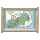 This is a well made, sturdy wooden tray with a flawless black finish and lovely map on the tray surface. It is both vintage & modern at the same time. Looks exactly like the photo; does not disappoint. So nice to find something of quality individually made and not the mass-produced 'shabby chic' merchandise seen in stores. I am so pleased to be able to give this to my college-age niece for her birthday. This can be used as a tray to hold jewelry or toiletries, or hung on the wall as art. The map surface is sealed (it is slightly shiny) so would be moisture resistant. It is well worth the asking price but I was able to apply a sale code as well. Very happy with my purchase. Map is crisp & clear and sealed with a water-resitant finish.