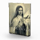 This is a beautiful sepia-toned image of St. Therese the Little Flower with her signature roses and crucifix.