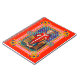 In this glorious representation, St. Thomas Becket, Archbishop of Canterbury, stands before an altar dressed for Mass. The altar is probably intended for St. Benedict’s near which—not at which--he was assassinated on 29 December 1170. It is a formal portrait, that is, the subject appears posed. Becket wears a bright red chasuble over a blue-green dalmatic and white alb. Over the chasuble, he wears his metropolitan pallium—a garment symbolic of his office as an archbishop who presides over an ecclesiastical province composed of several dioceses. The pallium is ornamented with 11 visible patée crosses rather than the more usual 5 visible crosses. (During the Middle Ages there was no definite rule regulating the number of crosses used.) St. Thomas cradles his miter in the crook of his right arm and carries his archiepiscopal cross in his left hand. A gash in his forehead, a palm of martyrdom, and the blood-red chasuble in the liturgical color for martyrs allude to his assassination. There is not a sword in sight—not even one laying on the floor at his feet. His name in Latin (Thomas Cantuariensis, that is Thomas of Canterbury) vertically flanks his figure in the aqua and sapphire blue checkered background. The whole is contained in a framework of Celtic design. +