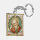 You have two options here: 1) Leave the keychain as is with the same image on both sides. Or, 2) hide or delete the image of the Apostle on the back to reveal a blank, solid-colored area ready to receive your own text or image. To choose a new background color, see the suggested coordinating hues on the Color Palette postcard for this image. Color Palette postcards are found in an image's associated COLLECTION and in the Special COLLECTION devoted just to color palettes. + St. Thomas the Apostle, also called Didymus (the "twin"), was one of the Twelve Apostles of Jesus Christ according to the New Testament. After initially doubting the Resurrection until he touched Christ's wounds for himself, St. Thomas went on to evangelize Parthia, Persia, and India with missionary zeal. Here, he holds a spear. According to tradition, St. Thomas was stabbed to death with a spear c.72 while praying on a hill in Mylapur, India. He was buried nearby. + Image Credit (JMAS 12): Antique image of St. Thomas the Apostle from a late 19th century devotional print in chromolithography with gilt accents originally published by Josef Müller, Art Publisher, Munich, Germany, from the designer's private collection of religious ephemera. The image is one of twelve in the publisher’s Apostle Series (No. 12155). + Feast: July 3