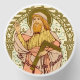 St. Thomas the Apostle, also called Didymus (the "twin"), was one of the Twelve Apostles of Jesus Christ according to the New Testament. After initially doubting the Resurrection until he touched Christ's wounds for himself, St. Thomas went on to evangelize Parthia, Persia, and India with missionary zeal. Here, he holds a builder's square. This attribute has several explanations both literal and symbolic. In one origin story, he erects the very first church building in India with his own hands. In another, he builds a palace for an Indian ruler; in its variant, he gives away his fee to the poor explaining away the actual palace as one of Christ's promised mansions in heaven. The third explanation may be merely symbolic of building the Church in India on a strong spiritual foundation. + Image Source (RLS 18): Antique image in chromolithography with gilt accents of St. Thomas the Apostle from Red Letter Saints: Being a Series of Biographies of those Saints for which Proper Collects, Epistles and Gospels are appointed in the Book of Common Prayer. Printed by E. Kaufmann, Lahr, Baden, Germany, for the Society for Promoting Christian Knowledge / S.P.C.K. (London, 1911), p. 8. From the designer’s private library. + Feast: July 3 + Text is in dark red-brown (#460000) which matches the figure's outline.