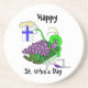 Here's another one of our St. Urho's Day designs. This one is of a drunk or inebriated grasshopper. He drank too much beer and wine, while eating the grapes! Since he is the origin of the Finnish, we also included the Finnish Flag emblem on the beer stein. You can customize this item also. Do do that, just click "Customize" and then the area that you want to add something to. Click the "Add Text" and insert what you want. Use the "F" to change the fonts. A drop-down menue with lots of options will appear. Click the one you want and then "Close." To change the font color, click the box. St. Urho's Day is March 16, the day before St. Patrick's Day. For more information, visit our website at http://www.brownielocks.com/urho.html