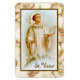 Little is known of St. Viator of Lyon (4th century), a Gallo-Roman lector. At that time, the office of lector was strictly an ordained ministry. As assigned by his bishop St. Justus, St. Viator proclaimed the Scriptures at liturgy and instructed young people in the Faith at Lyon Cathedral. The bishop obviously thought very highly of St. Viator to entrust him with such an important task. And, the feeling was mutual: when St. Justus decided to retire from his bishopric to become a monk in Egypt, St. Viator joined him. The two saints died within weeks of each other at Scetes (present-day Wadi El Natrun), Egypt, c. 390, perhaps as the result of an epidemic. + St. Viator is patron saint of Catechists or Catechism Teachers and the Viatorians. The Viatorians or Clerics of St. Viator are a congregation of priests, brothers, and lay associates that was founded in 1831 by Fr. Louis Querbes. Their charism is education at all levels, from elementary school through university, and missionary work. + Here St. Viator holds a lily of purity in one hand; in the other, an open book. The words inscribed on the pages of the book St. Viator holds are “Adoretur et ametur Jesus” which translates “Adored and loved be Jesus”. It was a favorite devotional phrase of Fr. Querbes. Today, it is the motto of the Viatorians. + Feast: October 21 + NOTE WELL: St. Viator of Lyon the Catechist is often confused with St. Viator of Bergamo, a 4th-century Italian bishop (Feasts: January 15 and, in Bergamo, December 14). + Image Credit (BF 02): Antique image of St. Viator from a devotional chromolithograph, originally published by Boumard et Fils, Paris, France, late 19th-early 20th century, from the designer’s private collection of religious ephemera.