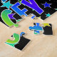 This lively, exciting, birthday-themed jigsaw puzzle design features the message "HAPPY BIRTHDAY, STACEY" with the characters having a colorful rainbow spectrum inspired gradient pattern, along with a fun star field background pattern. A vibrant puzzle like this might be a fun way to acknowledge the birthday of somebody named Stacey. [~Z0000468]