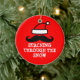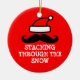 Staching through the snow Christmas ornament. Funny xmas Holiday design with Santa hat and black handlebar mustache. Moustache humor.