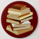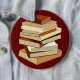 Stack of books with covers in light shades of beige, brown and ivory white.