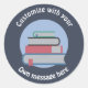 Cartoon stack of books on round stickers to custom with your own text.