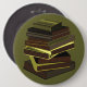 Stack of books with covers in dark shades of green, black, yellow and grey.