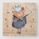 This gorgeous clock features a colored pencil drawing of a silkie, a cochin, and a Jersey giant hen standing stacked one atop the other.