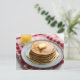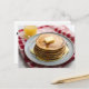 This is an AI generated design. I wanted it to be a stack of pancakes with a pat of butter on top and covered in syrup, the plate I wanted it to be on red checkered table cloth. The glass of orange juice just showed up.