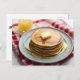 Stack of pancakes on plate covered with syrup postcard