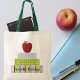 Stylish teacher's carry all canvas tote bag, with graphic art of a colorful stack of school books, with a red apple, sitting on top. Customize the text to read anything you want. Makes a great teacher's gift idea.