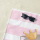 Stacked Cute Cartoon Cats Pink Distressed Stripes Beach Towel