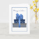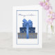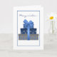 Three wrapped and elegantly designed gift box with a large blue bow holding them together. A unique card to give to family, friends, co-workers, business acquaintances. Personalize text on cover and inside. Matching ostage stamp also available