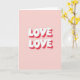 This greeting card features the word “LOVE” shown twice, stacked in the center, creating a simple scene that feels like two matching notes passed between sweethearts 🥰. Each “LOVE” is set in thick, rounded white letters that look soft and friendly, as if they’re meant to be held onto. Behind the white letters, a candy-apple red shadow falls diagonally down and to the right, adding depth and a little spark of energy ❤️. The background is a wide field of blush-pink, like a gentle wash of color that makes the white and red stand out without feeling loud. With the same word repeated, the design reads like an echo, as if one “LOVE” is answered by another. The text stays centered and dominant, with the red shadow acting like a second layer that peeks out from every curve and corner of the letters. Near the lower “LOVE,” a tiny ® mark sits close to the final “E,” tucked neatly beside the lettering.