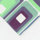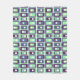 This medium fleece blanket has a mid-century modern design of rectangles stack three thick in cool colors of blues, greens, and purples on a field of white. Want the same design with different colors? Message me.