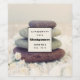 Wine making bottle labels with a photograph featuring rocks stacks on top of each other. Surrounded by loose white rocks and little white flowers.