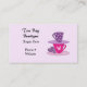 A unique card featuring colorful stacking teacups with fun patterns. Customize with all of your business information as desired.