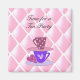 A fun design featuring a pink diamond background with colorful stacking teacups. Ready for a tea party!