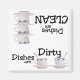 This magnet features blue and white cups and saucers. Text reads: "Dishes are Dirty". Turn this magnet up-side-down and a stack of blue cups ans saucers is featured with this text: "Dishes are Clean".
