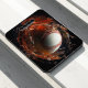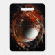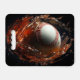 This stadium seat cushion is shown with a photo print of a baseball crashing through glass.