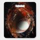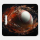 This stadium seat cushion is shown with a photo print of a baseball crashing through glass.