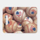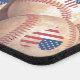 This stadium seat cushion is shown with a photo print of vintage baseballs. Some baseballs have an image of a heart-shaped American flag, meaning I love American baseball. Customize this item or buy as is.