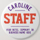 Staff Badge for a hospitality company. Add the name of the Staff Member to create a personal company badge for your employees to wear when with guests. Great hospitality business button badge.