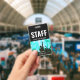 The staff name badge can be customized with your event name, date and venue information. The concert crowd photo may be used or replaced with your own photo. The QR code on back can be customized to direct to your website.