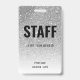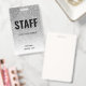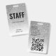 The staff team member pass name badge can be customized with your event name, date and venue information. The QR code on back can be customized to direct to your website.