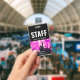 The staff name badge can be customized with your event name, date and venue information. The concert crowd photo may be used or replaced with your own photo. The QR code on back can be customized to direct to your website.