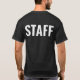 Personalized t-shirt for your staff employees. Easily identify your team members with these customizable t-shirts. Large print Staff text on back. Front smaller print and custom name. Makes a great budget bulk work uniform shirt. Simple minimal design for your small business. Easily change font style and color in the design tool.