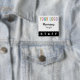 Easily personalize our square pin back name badge with your logo, staff name, or other custom text. It attaches with a safety pin back. Designed in black and other colors (all colors are customizable). Our square buttons are 2 inch x 2 inch. Made in USA. No minimum order quantity and no setup fee.